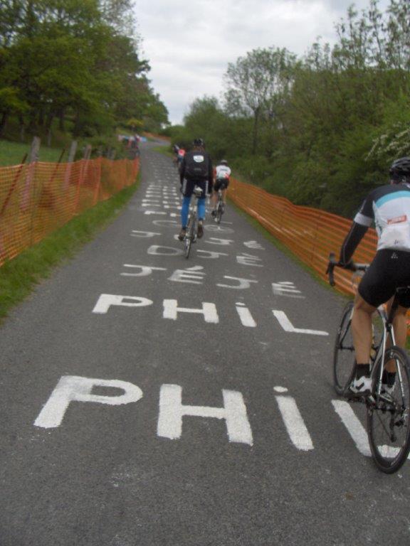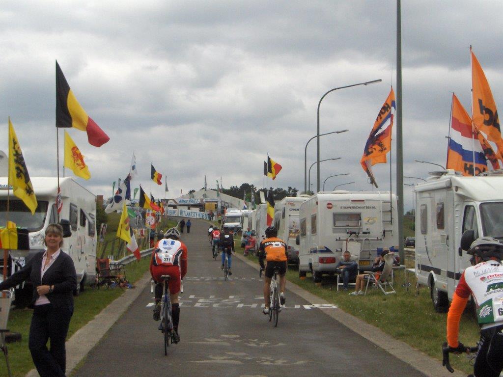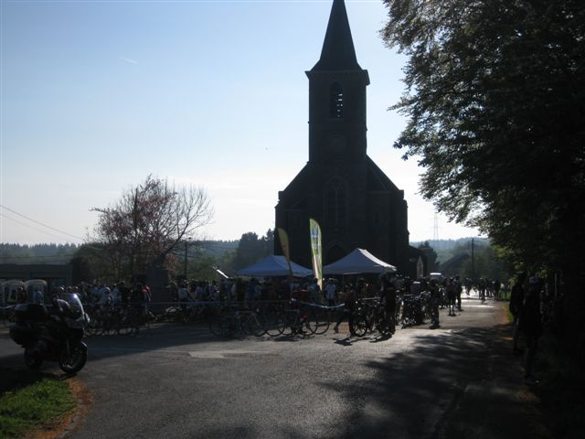 In zügiger Fahrt setzten wir nun unsere (Tor) Tour fort. Schließlich lagen noch 10 Côtes vor uns. Die 1.Kontrolle erreichten wir in Werbomont.Sie war direkt vor einer alten Kirche aufgebaut. Alles was das Radlerherz verlangt an Essen und Getränken war hier aufgebaut und das reichlich. Jörg kaufte sich noch einen Ersatzschlauch und schon ging es weiter. Der 1.Côte nach 81 km „Côte de la Roche en Ardenne“ stand nun an. Quer durch die kleine Einkaufsstraße des Ortes ging es vom Tal der Ourthe aus, in einer Gruppe, gemeinsam, in Richtung Bastogne zur 2.Kontrolle und gleichzeitig zum Wendepunkt unserer Tour. Viele Orte hatten sich richtig herausgeputzt um beim Profirennen, einen Tag nach uns, im Fernsehen zu glänzen. Die Strecke verlief nun auf einigen Kilometer entlang der Autobahn A 26 in Richtung Houffalize zum 2.Côte nach 132 km dem „Côte Saint-Roch“. In Houffalize konnten wir einigen MTB Fahrern beim Training auf der MTB Weltcup-Strecke zuschauen. ( Auch nicht schlecht) Durch Tal der Ourthe ging es nun weiter in Richtung Kontrolle 3 in Houny. Noch einmal an den Belgischen Keksen laben und Energie tanken für den nächsten Abschnitt mit Côte 3 nach 174 km „Côte de Wanne“ und Côte 4 nach 183 km „Côte de Stockeu“. Dieser Anstieg liegt nur etwa 200m von der 4.Kontrolle in Stavelot entfernt und ist zu vergleichen mit dem Anstieg in Falkenstein (Bexbacher Marathon) Auf dem höchsten Punkt wurde Eddy Merckx ein Denkmal errichtet. Jörg und ich legten hier eine längere Pause ein. Michael und Patrick hatten sich bereits nach der Kontrolle in Houny von uns verabschiedet und fuhren mit einer schnelleren Gruppe voraus. Nur 1 km noch der Kontrolle folgte nach Km 186 Côte 5 „Côte de la Haut Levee“ Unüberhörbar sind hier die Motorgeräusche von der nahegelegenen Renn-strecke in Francorchamps. Es folgt nun der 6.Côte nach 198 km „Col du Rosier“ und einer schönen Strecke entlang der Ambleve in Richtung Remouchamps wo der nächste Côte auf dem Plan stand. Zuerst folgte aber noch Kontrolle 5 bevor es dann nach 229 km zum 7.Côte einem Mythos der „Côte de la Redoute“ ging. Hier herrschte bereits Feierstimmung. Wohnmobile aus allen Ländern bildeten im unteren Bereich ein Spalier. Die Besitzer machten es sich daneben in Campingstühlen bequem.Jeder von uns wurde mit entsprechendem Applaus begrüßt und angefeuert auf der anstrengenden Fahrt in Richtung Gipfel.Für die Profis beginnt ab hier die heiße Phase des Rennes. Auch für uns wird es hab hier immer schwerer. Kilometer 242 folgt Côte Nr.8 „Côte de Forges“. Nur wenige Kilometer hatten wir jetzt zum Durchatmen. Der Getränkestand von Red Bull in Hôni im Tal der Ourthe signalisierte uns bei km 254 den Côte Nr.9 „Côte de la Roche aux Faucons“.Steil, sehr steil ging eine kleine Strasse gerade aus hoch (in den Himmel). Jetzt wusste ich warum Jörg auf das „Brausewasser„ verzichtete. Nach einigen kleineren Steigungen erreichen wir das Stadtgebiet von Lüttich. Durch die Arbeitersiedlungen ging es vorbei am Stadion von Standard Lüttich zum letzten der 10.Côtes nach 268 km „Côte de Saint-Nicolas“ Viele Anwohner saßen hier im Vorgarten und zollten uns mit ihrem Applaus Respekt vor der unserer Leistung. Jetzt nur noch die nicht endende Gerade zum Ziel der Profis hoch und ab ins Ziel. Geschafft ! Jeder bekam hier gleich seine Medaille umgehängt. Auch Jörg und ich waren froh nach 12h 20 min wieder auf Michael und Patrick zu treffen die über eine Stunde vor uns im Ziel waren. Nach dem Empfang der Urkunde und des Shirt (leider nur noch in Größe S da) fuhren wir, am Start der Profis vorbei, zurück in Richtung Hotel. Letztendlich hatten wir am heutigen Tag fast 300 km auf dem Tacho und waren der Überzeugung das diese Tour mit jeder Alpentour (Ötzi) standhalten kann.
