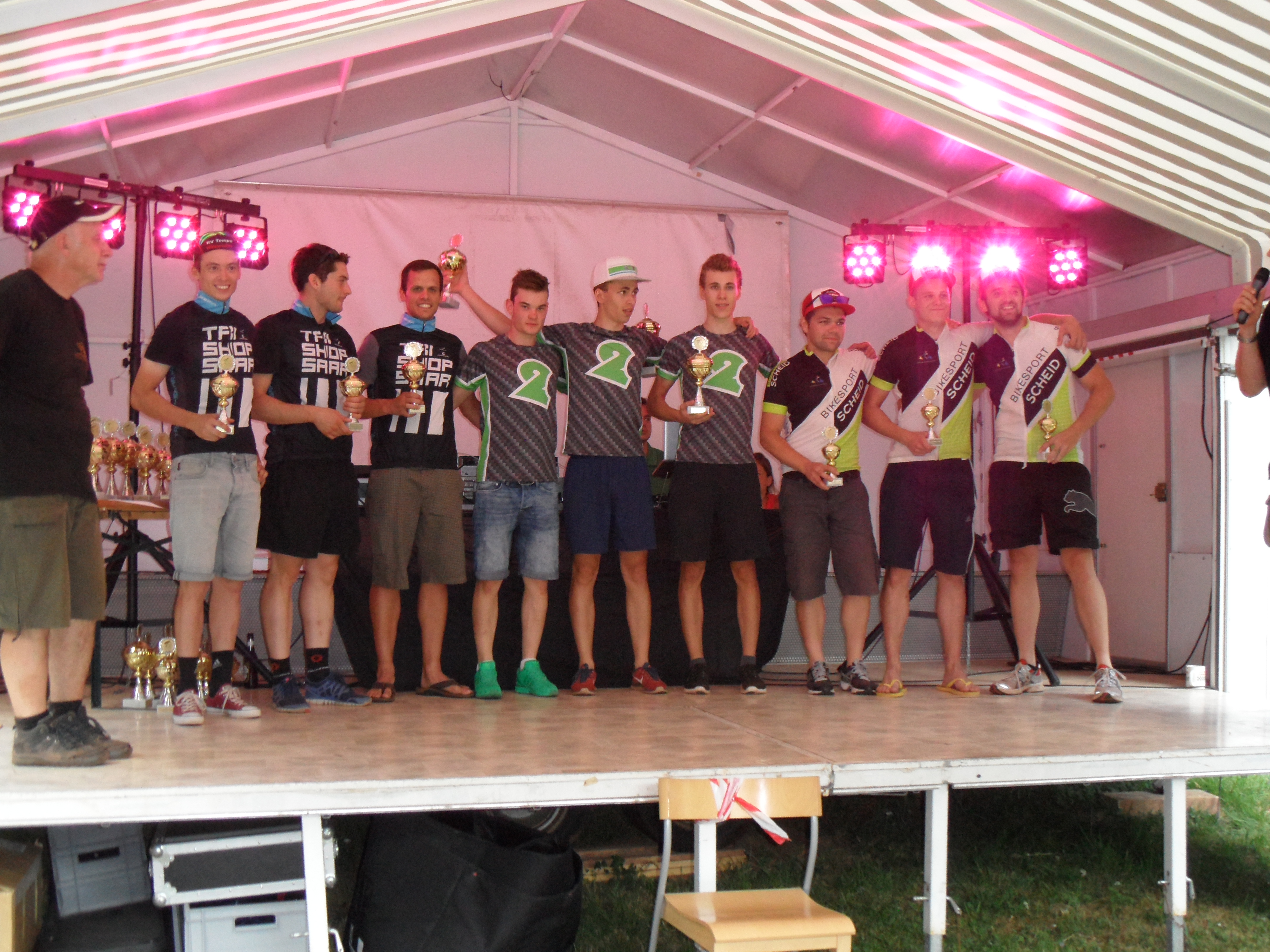 Mit dem bis jetzt besten Ergebnis in der laufenden Saison beendeten die Jungs vom BikeSport Scheid / RV Möve Team das 10 Stunden MTB Rennen vergangenen Samstag in Lebach. Die 6 km lange Rundstrecke rund um das Gelände der Motorcrossfahrer bot mit schnellen Abfahrten, langen Anstiegen und einem sehr verwinkelten Abschnitt durch das Trailgelände, ein anspruchsvolles Wettkampfterrain. Die Hitze um 38 Grad tat ihres hinzu. Mit 42 Runden beendete das Team um Tino Kipping, Frederik Veith und Thilo Seimetz das Rennen auf einem hervorragenden und verdienten 3. Platz.