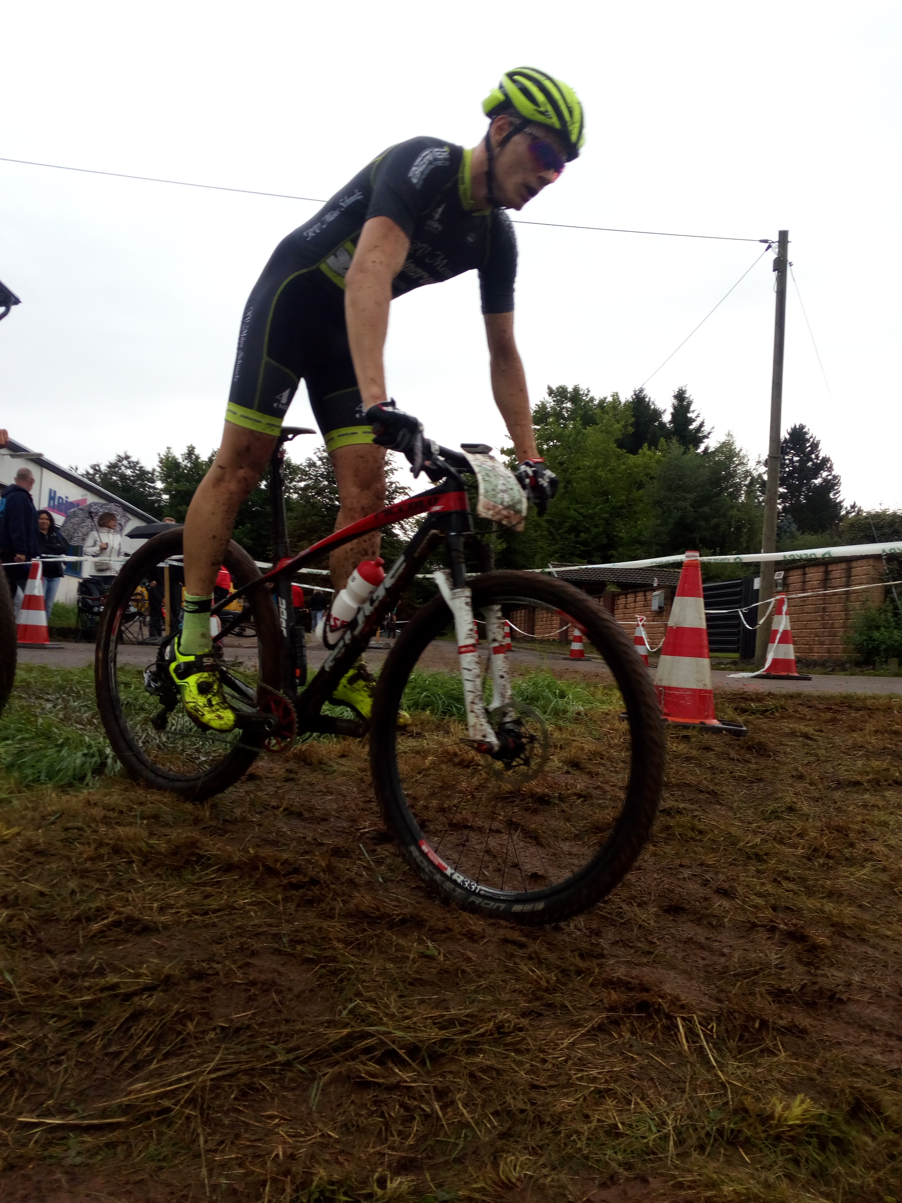 Elitefahrer Frederik Veith konnte sich gleich nach dem Start mit „halb Profi “ Marco König absetzen. Gemeinsam fuhren sie Runde um Runde den Vorsprung auf die Konkurrenten aus. Durch den immer wieder einsetzenden Regen war die Strecke sehr matschig und rutschig geworden sodass die technischen Passagen immer schwieriger zu befahren waren. Marco König war Frederik Veith technisch gesehen ein wenig überlegen und nutzte kurz vor dem Ziel die Chance auf einen Angriff, dem Frederik nicht mehr kontern konnte. Dennoch beendete er das Rennen nach 30 km auf einem hervorragenden zweiten Platz.