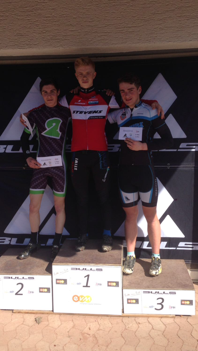 Am Sonntag, 19.03.17, startete U17 Fahrer Marcel Scherer bei windigem, regnerischem Wetter beim Rundstreckenrennen in Trierweiler. Der 1,9 km lange Rundkurs musste je nach Altersklasse mehrmals befahren werden. Schon zu Beginn legten die Jungs ein ordentliches Tempo vor, dem Marcel mühelos folgen konnte. Immer wieder entstanden Lücken, die es zuzufahren ging, um den Anschluss nicht zu verpassen. Das kostete natürlich sehr viel Kraft und so mancher musste dem hohen Tempo Tribut zollen. Nach 10 Runden konnte Marcel sich in einer 6-er Gruppe gut positionieren und schaffte es zum Schluss auf einen hervorragenden dritten Platz !