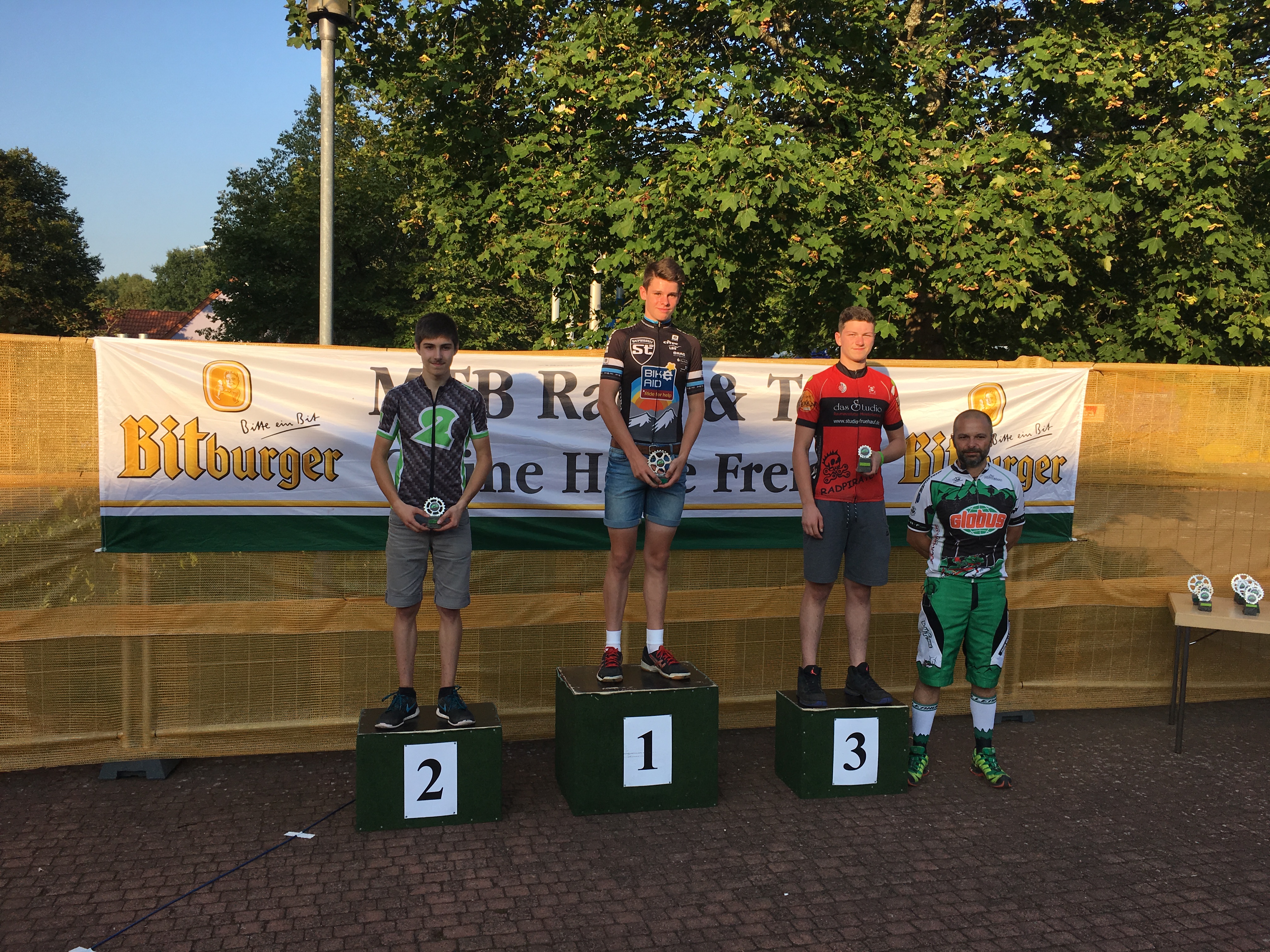 Einen souveränen Sieg konnten Frederik Veith und Thilo Seimetz herausfahren. Den 6 km langen Rundkurs mit vielen Trails und kurzen knackigen Anstiegen konnten die beiden in zwei Stunden 8 mal befahren und sicherten sie sich damit den Gesamtsieg in der 2er Teamwertung der Herren.